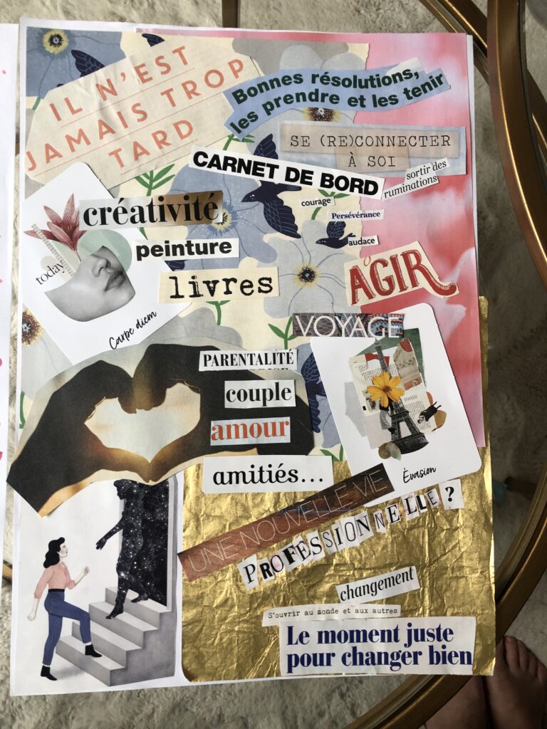 Des magazines, des ciseaux, de la colle : je mets des images et des mots sur ce que je veux vivre.